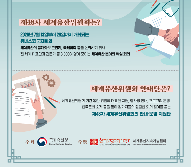 ※세부사항은 국가유산청 홈페이지(www.khs.go.kr) - 공지사항 - <세계유산위원 안내단 모집 공고> 참조