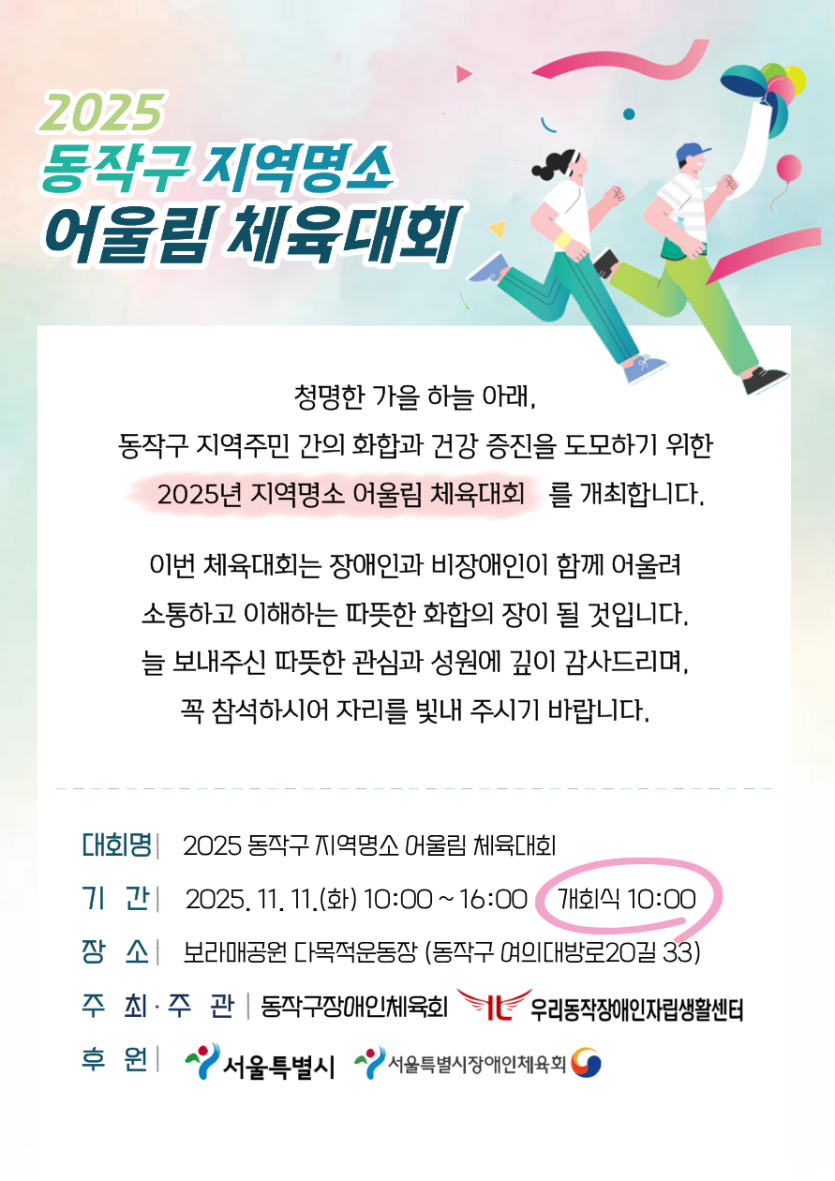 [우리동작장애인자립생활센터] 2025년 동작구 지역명소 어울림 체육대회 안내