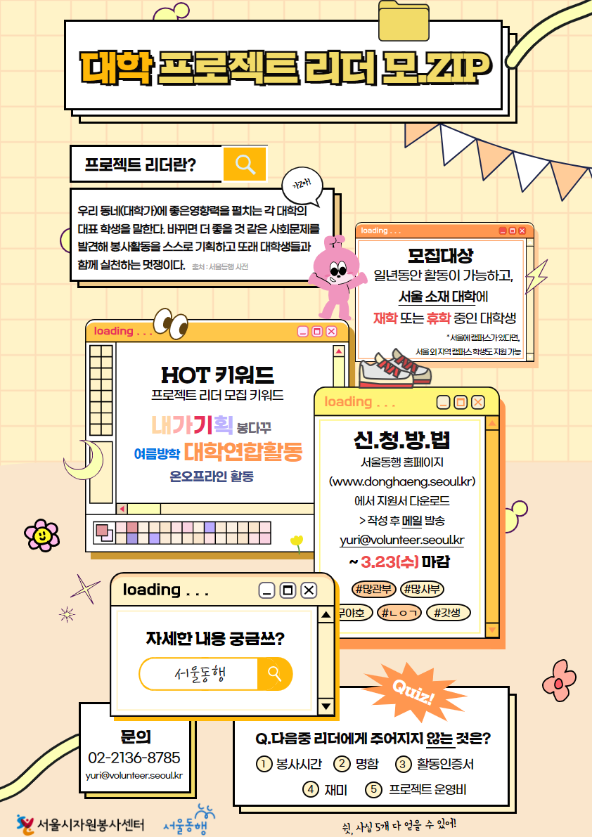 [서울시 자원봉사센터] 『대학별 프로젝트 리더 추가 모집』 (22.03.18)