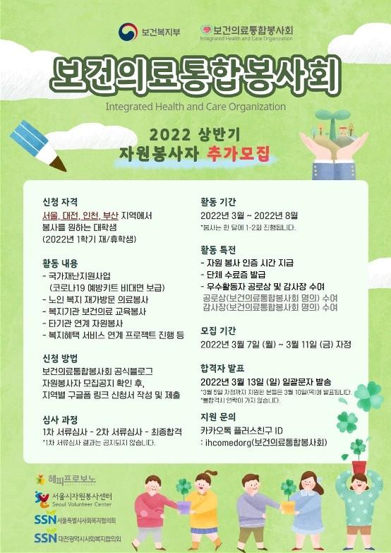 [보건의료통합봉사회] 2022년 보건의료통합봉사회 상반기 자원봉사자 모집 (22.03.11)